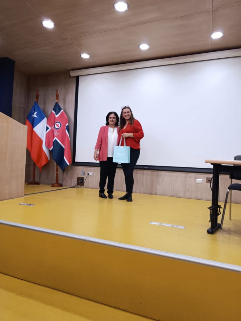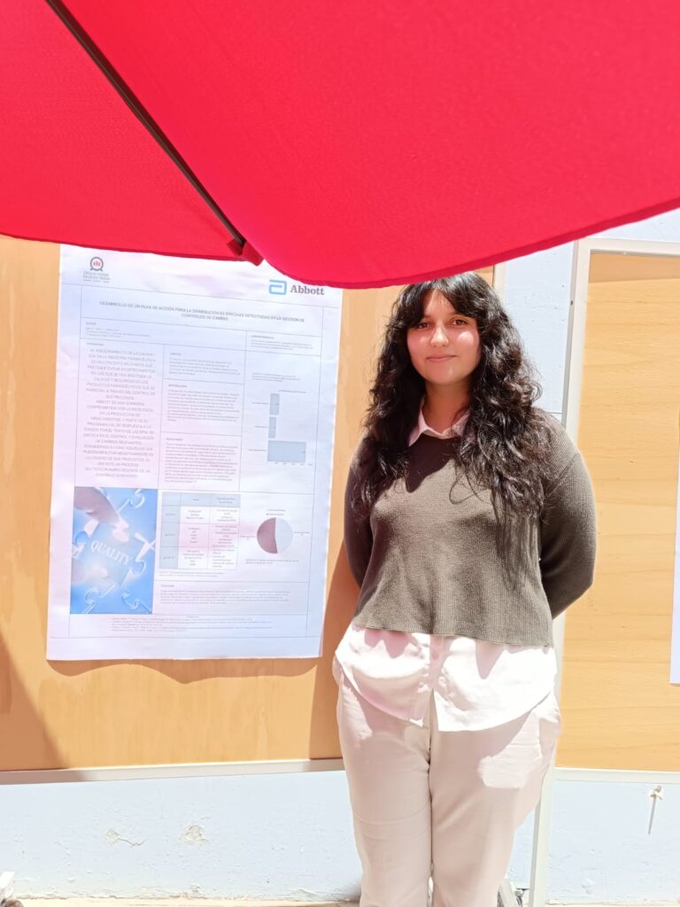 Durante la actividad, organizada por la QF. Lorena Sáez, vicepresidenta del Colegio de Químicos Farmacéuticos de la región de Valparaíso, los estudiantes presentaron sus trabajos de titulación en modalidad Póster, mostrando su investigación y habilidades a la comunidad universitaria. La Dra. Carla Taramasco, Directora del Instituto de Tecnología y Ciencias del Servicio (ITISB) de UNAB, dictó una conferencia sobre las líneas de investigación del instituto y cómo los Químicos Farmacéuticos pueden involucrarse en proyectos de investigación y desarrollo tecnológico.