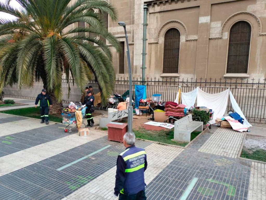 Alejandro Urbina, Director de Seguridad Pública del municipio de Cuidados, detalló que “ante nuestra labor de asegurar y recuperar los espacios públicos, atender los requerimientos de los vecinos y también asegurar la tranquilidad de la comunidad, realizamos un operativo al costado de la Parroquia de Viña del Mar, retirando rucos y carpas que habían de personas en situación de calle, que hace bastantes días venían realizando incivilidades y generando situaciones de inseguridad, sobre todo a la comunidad colindante”.