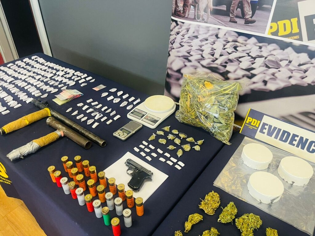 En la ocasión, los oficiales de la PDI lograron la incautación de cinco plantas de cannabis sativa, 212 gramos de la misma droga, 219 gramos de cocaína base, 1.057 de clorhidrato de cocaína y 1,92 gramos de ketamina, todo avaluado en más de 14 millones de pesos.