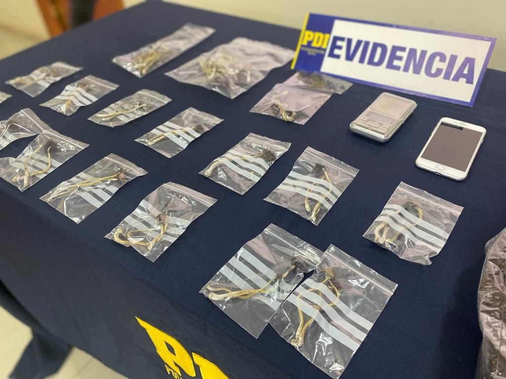 De esta manera, los oficiales llegaron hasta el domicilio de la aprehendida, lugar desde el que fueron incautados 48,99 gramos de setas alucinógenas, dinero en efectivo, una balanza digital y un kit de cultivo de las especies que se encuentran prohibidas por la Ley 20.000.