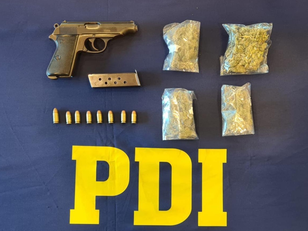 Cabe señalar, que al momento de la detención el sujeto portaba un arma de fuego tipo pistola, con municiones y cannabis sativa para distribución, además, mantenía requerimientos de diversos Juzgados de Garantía de la zona, por lo que fue puesto a disposición de la justicia, para efectuar su control de detención y formalización correspondiente por los ilícitos investigados.