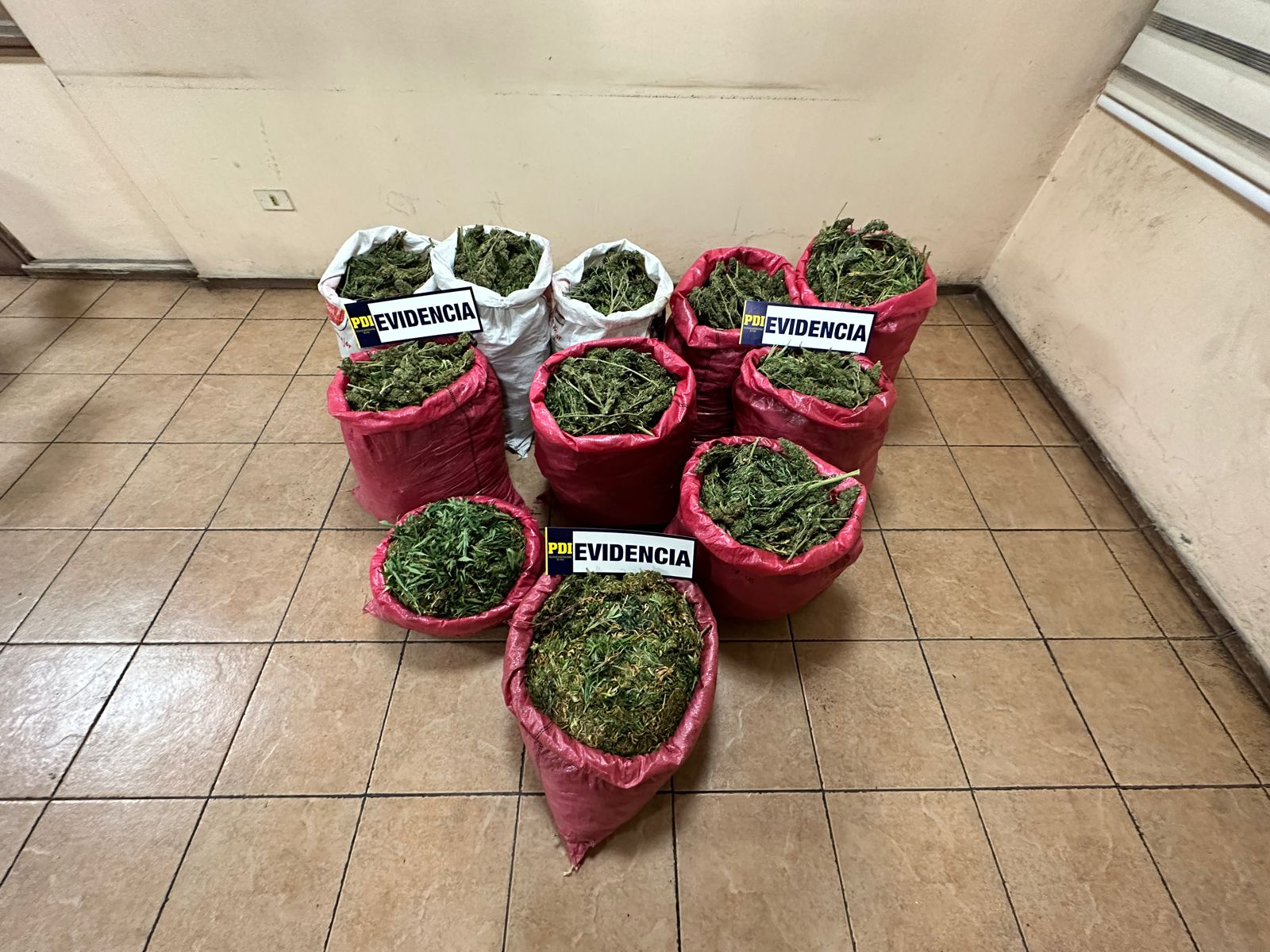 En el procedimiento se encontró un sector de acopio de droga procesada para su consumo, incautando 90 kilos de la sustancia.