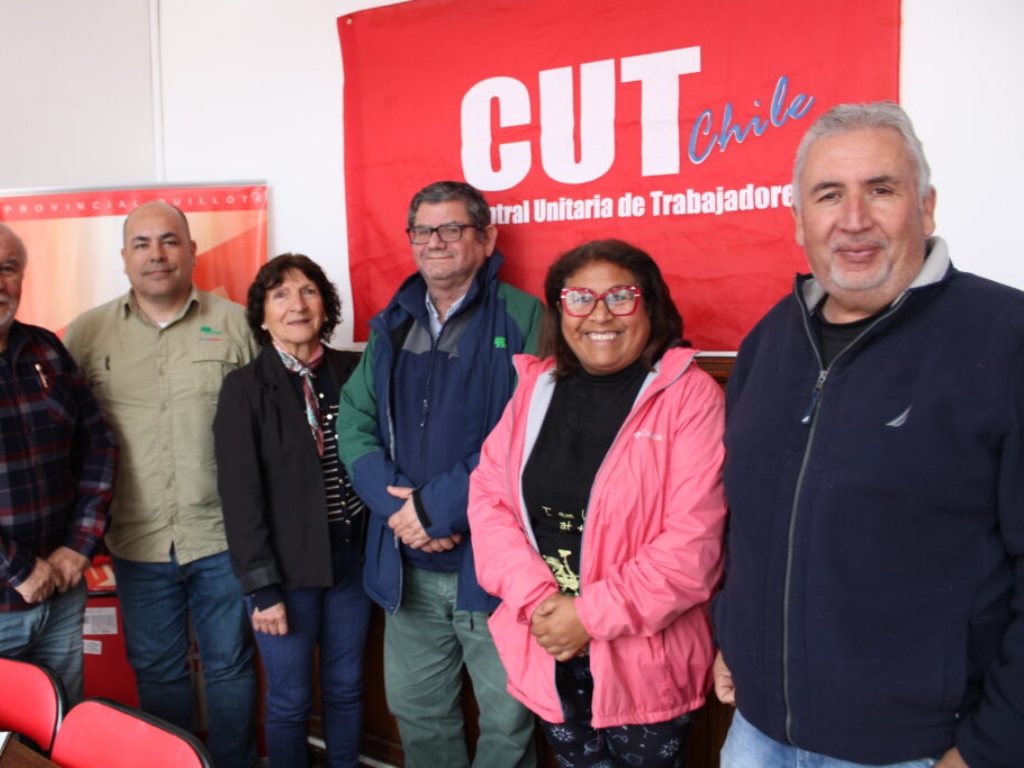 En la sede de la Central Única de Trabajadores (CUT) Provincial Quillota el viernes 22 de septiembre, se llevó a cabo un grato e importante encuentro junto con el Sindicato Nacional de Profesionales y el Sindicato Nº1 de Valparaíso representados por Marcelo Pérez y Daniel Ariz junto a Félix Forno, respectivamente.  Por el lado de la sindical de trabajadores estuvieron su presidente Sergio Olivares acompañado de Ana María Espinoza y Sandra Peralta, encargada de la unidad de género de la CUT.