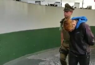 De garabatos, rápidamente la discusión se fue a las manos. En el registro se aprecia al menos a 5 Carabineros tratando de contener la situación, mientras eran golpeados por el grupo de personas.